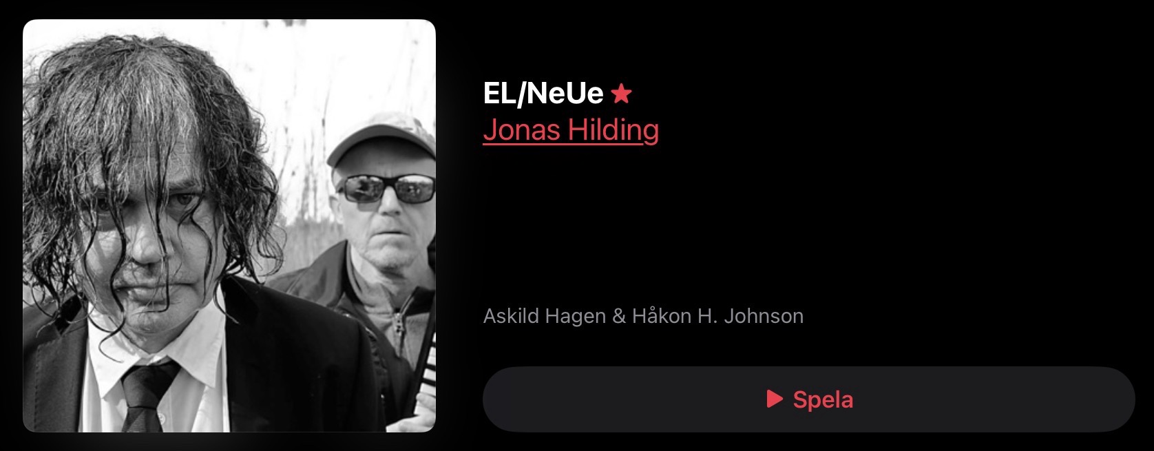 Den allra första låten jag fick korn på med duon var Veijer en Sten från albumet Neben från den senaste plattan som duon släppte i slutet av förra året. Jag kände nästan omedelbart att det var läge att upprätta en spellista för bandets musik. Blev strax norsk snöbollseffekt och den ena låten efter den andra började rulla in i spellistan. Så rekommenderar EL/NeUe å det varmaste! Inte minst de tre spår där Håkon Johnsons dotter Ida By Johnson står för kristallklar sång som bryter av perfekt mot de både suggestiva och lite drömska soundet.