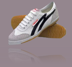 Den unge mannen på bilden heter Fred och jobbar i Paris enda bordtennisbutik – Friendship Sport – som ligger på 6 Rue du Moulinet i 13de arrondissementet, några kvarter från metrostationen Tolbiac. Det här är en underbar liten affär som rymmer ungefär fem passionerade pingisentusiaster – sedan är det knökfullt och man står utan armbågsrum bland varukartonger, textilier, gummiplattor, stommar och väl tilltagna limtunnor. Under min Parisvistelse besöker jag butiken i förhoppning om att hitta en sedan länge utgången skomodell från Tibhar som jag använde under några säsonger i början av förra decenniet. Svårt nuförtiden att hitta Tibharprodukter i Sverige, tyvärr. Det mesta går förstås att beställa hem, men utbudet är inte sådär jättestort i storlek 46-47, och att hitta en äldre skomodell i de storlekarna kan vara väldigt lurigt. Tibhar Rookie hette den, och det kom en snarlik uppföljare för några år sedan som hette Rookie II. På Tibhars hemsida har båda blivit utfasade och verkar ha fått sin fortsättning i modellen Basic som ser ut att bygga på samma enkla grund som Rookiesarna. Formgivningen och designen av moderna pingisskor har annars börjat dra något mer åt det bulligare joggingskohållet – ni vet med transparenta plastbubblor inbakade i fläskiga yttersulor och överlastade plösar och ovansidor med lika gräsliga som stillösa detaljer i silver eller guld. Nej, en pingissko ska vara enkel, lågmäld, stilren och ha en ganska tunn och greppig yttersula. Ur skadesynpunkt kan man alldeles säkert göra lämpligare val, men så länge fötterna och benen fungerar föredrar jag en elegantare och mer traditionell skomodell framför en nybullig och smågrotesk. Hursomhelst – det visade sig att det fanns ett par original Rookies kvar till mig i Frankrike. Sympatiske Fred letade länge och väl bland kartonghögarna i den kaotiska butiken och lyckades till sist gräva fram ett par riktigt rymliga 46:or. För 130 kr! Merci beaucoup, Fred!