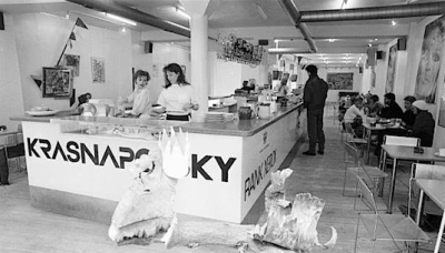 Min son var nog bara 3-4 år gammal när han för första gången var på Krasnapolsky. Vi fick ibland för oss att ”semestra” i Köpenhamn och alltid när vi gjorde det så hamnade vi där. Han gillade kaféet. Minns att han gluttade runt på de stora tavlorna på väggarna, de frilagda rören i taket. Och så satt han och läste pixiböcker och tyckte om att gå fram och tillbaka i den långa korridoren mellan borden, och spurta iväg till toaletterna längst ner till vänster i lokalen. Flera år senare, när han var i 16-17-årsåldern så satt han där och läste tidningar och böcker och spanade på flickor medan jag berättade anekdoter från tiden när det begav sig. Stället var fantastiskt framåt småtimmarna under mitten av 80-talet. Alla var där – punkare, poeter och konstnärer, nattsuddare, modeller och misfits. Det var mycket yta på Krasnapolsky, men ytan hade ett djup för oss då. Jag och min kamrat kunde hänga där i timmar innan vi gick ner i källaren under kaféet och dansade med danskorna på den likaledes tuffaste nattklubben i byn – U-MATIC. Läs nekrologen i Politiken som ger en bra bild av Krasnapolsky och dess historik.