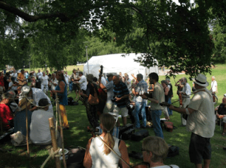 Igår tittade jag till Backastämman i Beijers Park på Kirseberg. Kände inte till den. Plockade upp ett smutsigt programblad från trottoaren i korsningen Föreningsg/Ehrensvärdsgatan häromdagen och fick nys om saken. Premiär i år. Ganska mycket folk, trots att det var årets varmaste dag. Caféet med glass och läskeblask var en verklig nåd, och en för dagen inhyrd krögare från Häckeberga slott stod för menyn på restaurangen. Vita plasttält och liten dansbana. Jam sessions med akustiska instrument. “Ta med dig felan och kom för nya musikaliska möten” – hette det i programbladet. Verkade funka. Folk satt i gräset och njöt av luta och banjo, ett och annat dragspel. Traditionellt avspänd Backastämning.