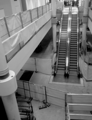 Det byggs om och renoveras i grannkvarteret också. Köpcentret Entré ska ju bli Malmö Plaza och kämpar redan för fulla muggar med sin identitet – vad är jag? Vad ska jag bli? Det är det Ingen som säkert vet, men ägarna meddelar på stora skyltar att framtidens köpcenter minsann håller på att ta form. Entrés långsamma förvandling till något annat eller till precis detsamma är igång – igen. Den stora inglasade gångbron över Fredsgatan som tidigare band samman de två huskropparna är ett minne blott. Den opererades bort under sommaren. Som en byggnadshistorisk parantes på den värnhemska köpcenterarkitekturens tidslinje. Bara en handfull butiker är kvar inuti Entré. Apoteket Hjärtat lämnade för någon vecka sedan, klädbutiken Monki står på tur. Jag pratade igår med personalen i tyska skoaffären Deichmann på andra våningen. De visste lika lite som alla andra om vad som sker bakom kulisserna, vilka butiker och affärskedjor som är kontrakterade eller om deras egen butik ska få vara kvar. Men de hyste ett visst hopp eftersom försäljningen hade gått över förväntan trots ombyggnadsarbetet. Under juli förvånade man alla i koncernen genom att sälja fler skor än vad systerbutiken på Emporia mäktade med. Deras förklaring till framgången var kundernas vittnesbörd om hur lugnt och skönt det var på Entré, och det får man ju hålla med om att det är. Det provisoriska tillståndet i byggnaden har sina förtjänster. Det enda Deichmannflickorna verkade lite bekymrade över var sina halsar och lungor. Byggdammet irriterade nämligen deras luftstrupar så till den milda grad att andningen kändes trög och olustig, framförallt efter ett längre arbetspass. Det lät inte så hälsosamt. Det ska bli spännande att se om man klarar av att hålla tidtabellen på Entré. Den första byggetappen ska vara avklarad lagom till julhandeln. Den stora nyinvigningen med namnbytet sker först i oktober 2015. Lokalhyrorna ryktas vara fortsatt tokhöga. Vem ska våga dra igång verksamhet? Ägarna tiger som muren. Många misstror projektet. Tant Entré är höggravid och jättebebisen Malmö Plaza har redan drabbats av födslovåndor. Vi vet inte riktigt vad som väntar, vad vi kommer att få se. Blir det en charmerande och trivsam koloss eller en abnormitet utan verklighetsförankring? Vi utgår i alla fall från att det blir en förlossning med komplikationer. Om den alls blir av.