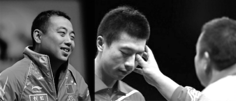 Man måste gilla coach Liu Guoliangs känsla för sina spelare. Hans närvaro och ömhet, förtroligheten han visar. Här petar han bort grums ur Ma Longs öga i setpaus. En annan specialitet han har är att gnugga Zhang Jikes öronsnibb, vilket kan vara av akupunktiva skäl, men ser kärt ut. Spelarna må vara effektiva och skoningslösa krigsmaskiner vid bordet – världmästare eller olympiska guldmedaljörer – men när de står framför hönspappa Liu Guoliang blir de trygga små gossar igen.