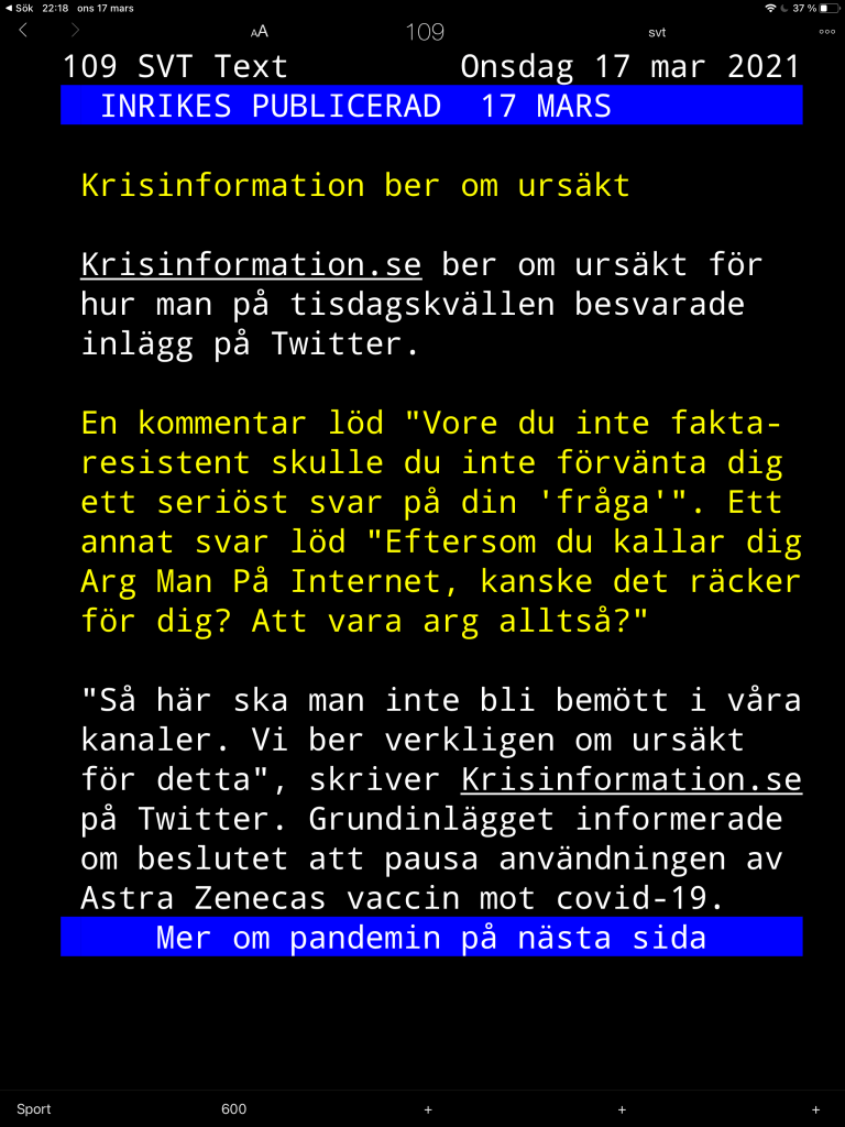 Kuriosa, Samhälle & PolitikJo, men kan ju lite förstå reaktionen ändå.. Hoho, naturligtvis inte bra, men man kan ju tänka sig hur det låtit i kommentarsfältet och att det nog därför kan brista för en och annan medarbetare på Krisinformation ibland.. Relaterade Publicerad av JHL Visa alla inlägg av JHL