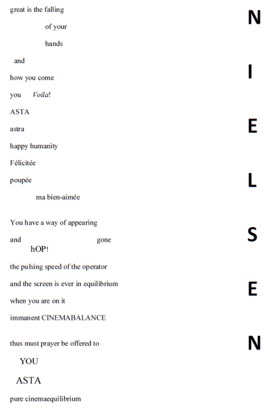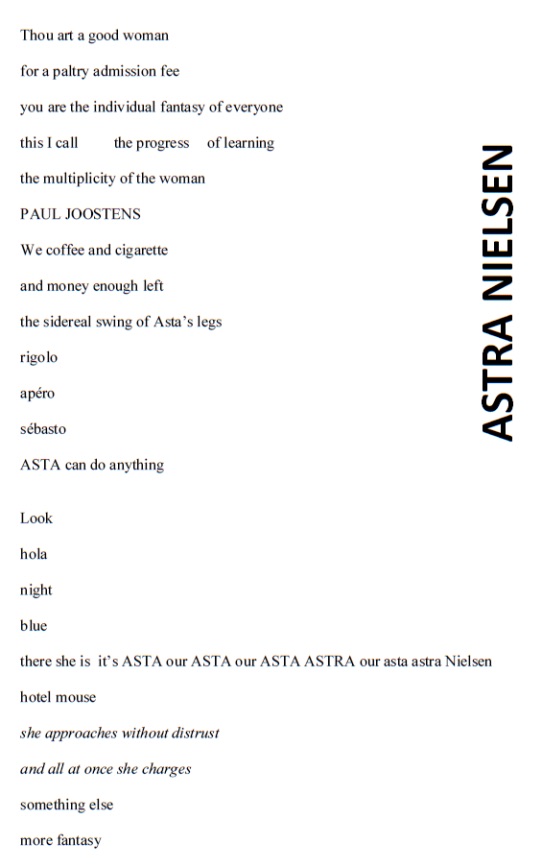 Tokhyllande expressionistiska dikten Asta Nielsen av belgiska poeten Paul van Ostaijen (1925). Uppläsning på originalspråk av hans yngre framtida kollegor. Vad man gillar internet ibland.. Och flamländskan ju ganska fin!