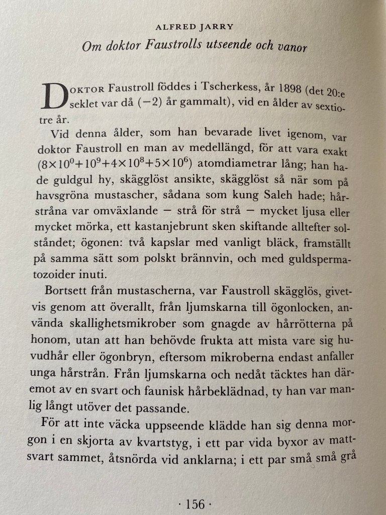 Alfred Jarry: ”Concerning the habits and bearing of Doctor Faustroll.” Ur Exploits & Opinions of Doctor Faustroll, Pataphysican. Skriven år 1898, utgiven 1911.