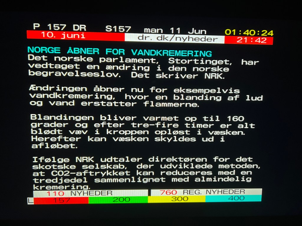 KuriosaVattenkremering Mer död. Den ena posten ger ibland den andra. Dansk text-tv berättade påtagligt – och miljövänligt – om ny norsk likhantering i natt. Relaterade Publicerad av JHL Visa alla inlägg av JHL