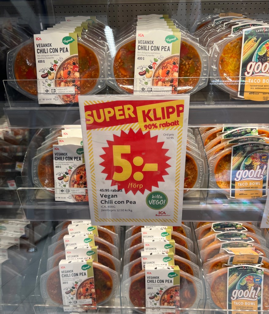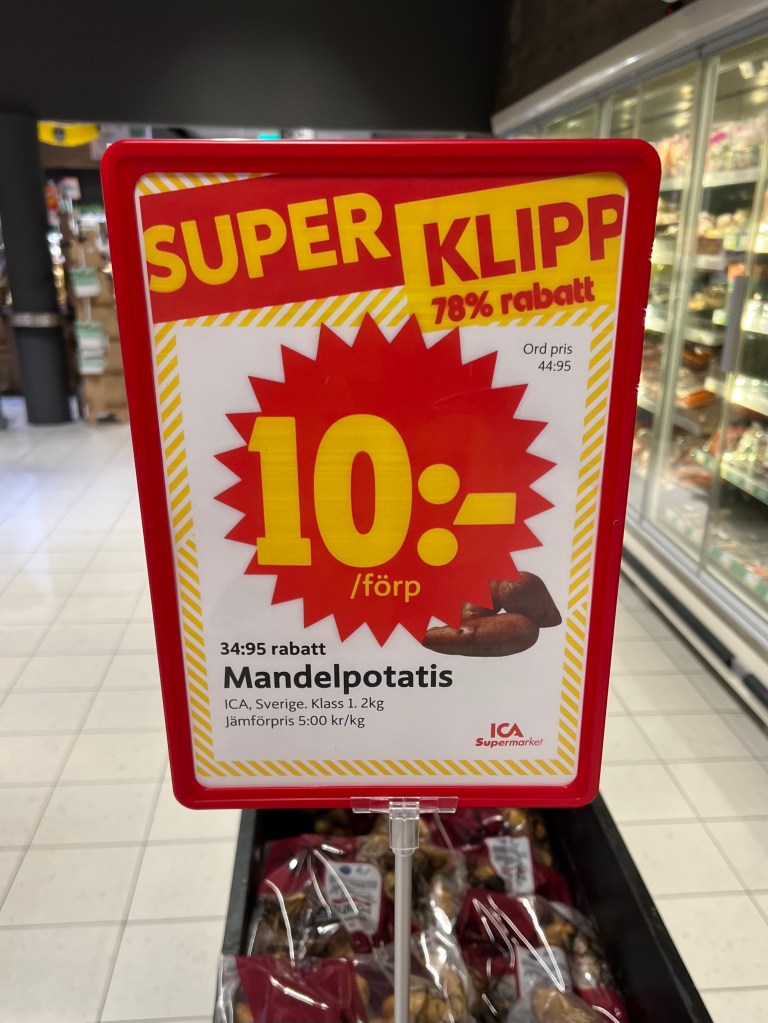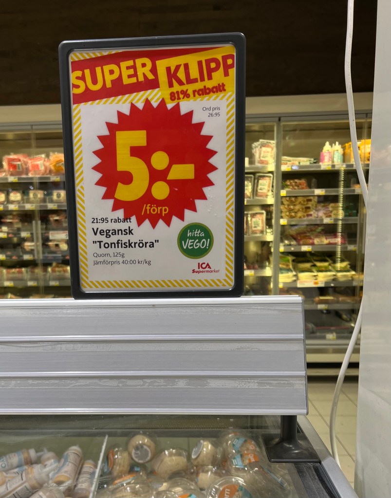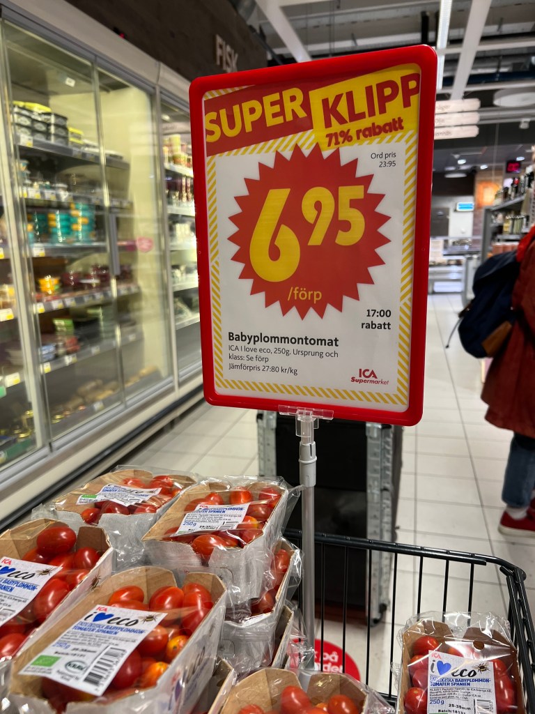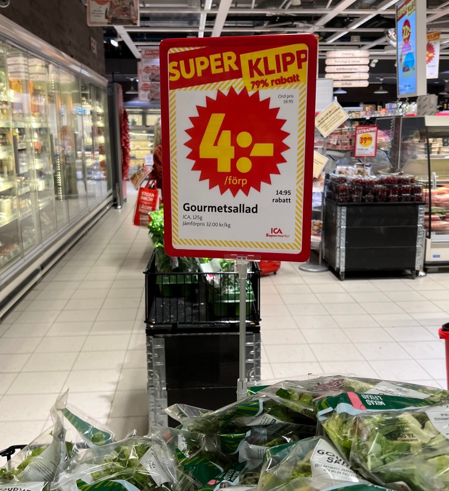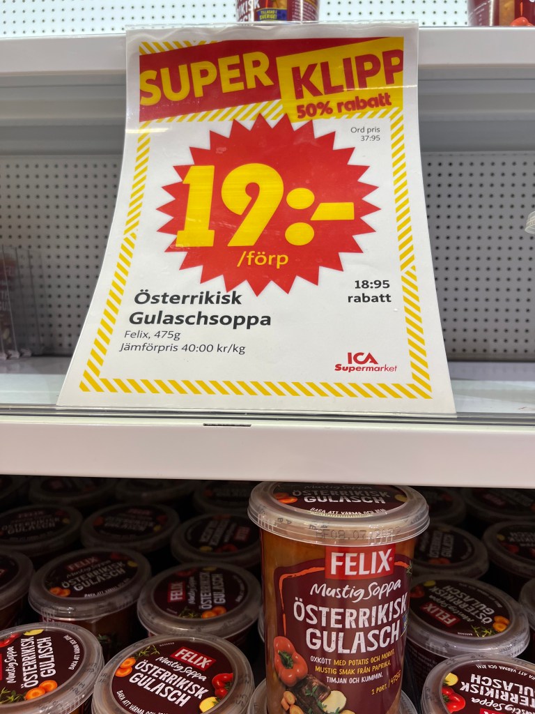 Det hela får nog beskrivas som lite vrickat (som saker gärna tenderar att turn into här vid Vänhem) men smått fantastiskt. Vi är nog många som känner oss himla tacksamma över den här pigga prissättningen. När inflationen plågar plånboken så är numera ICA-supermarket en räddare i nöden. En bra grej är också att deras billighetsdrive har fått både Hemköp och Coop att sänka sina priser på en del varor. Jag och mina fattiga vänner häromkring delar självklart fortlöpande information och skickar foto till varandra på alla de erbjudanden som dyker upp i våra kära affärer. Så räddar vi liksom varandra!