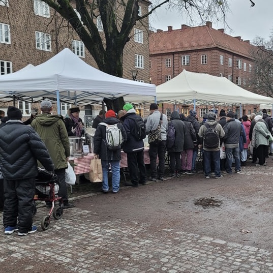 Det stämmer väl överens med vad jag ser här vid Värnhemtorget i Malmö. Kön till ideella föreningens Matkärringarnas sopp- och matkök ringlar sig längre för varje vecka som går. Ingen tvekan över att det pågår en eskalerande social utslagning. Elkris, inflation och extrema prishöjningar gör sitt till i rask takt nu.