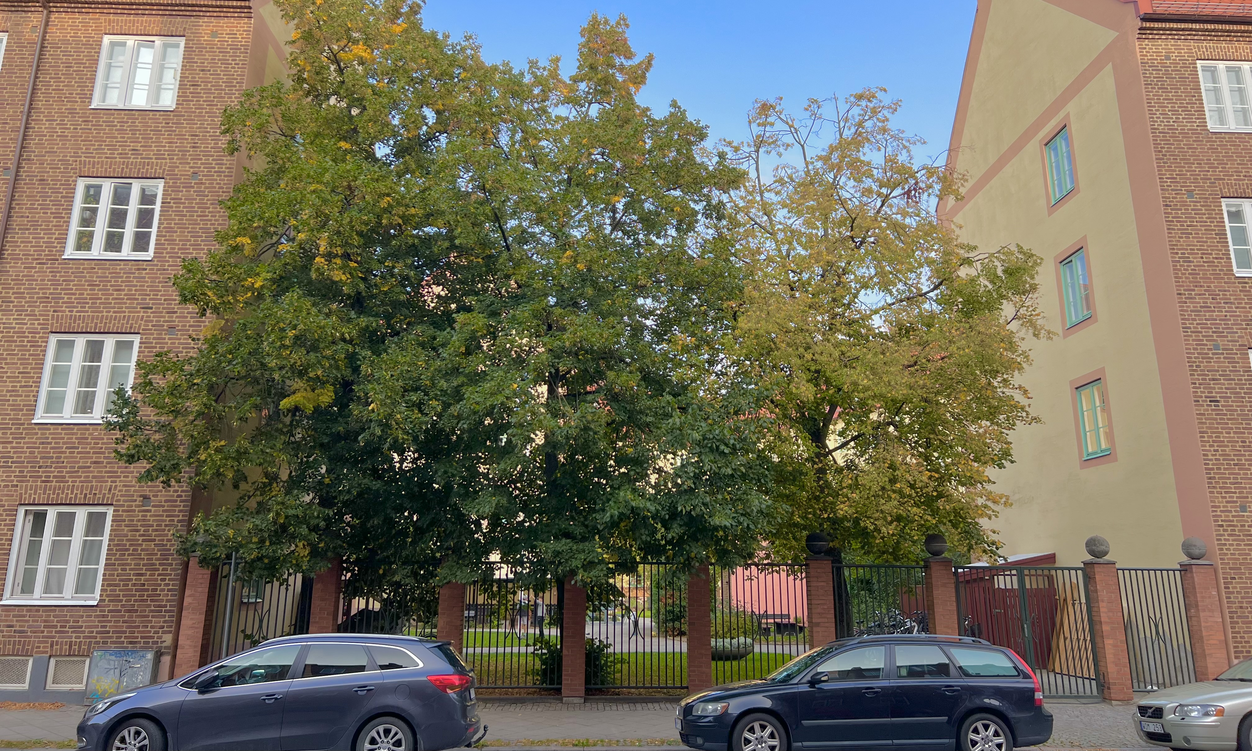 Vi hade bott kloss i kloss med det där huset uppe i högra hörnet på första bilden – om det hade varit innan 1975. Då revs nämligen Ensamheten och lämnade ett tomt, numera grönt gap mellan en huskropp och en annan. Så nu är vi istället granne med typ Tomheten (bilderna är från 1913, mitten från 1970-talet – och idag, september 2023).