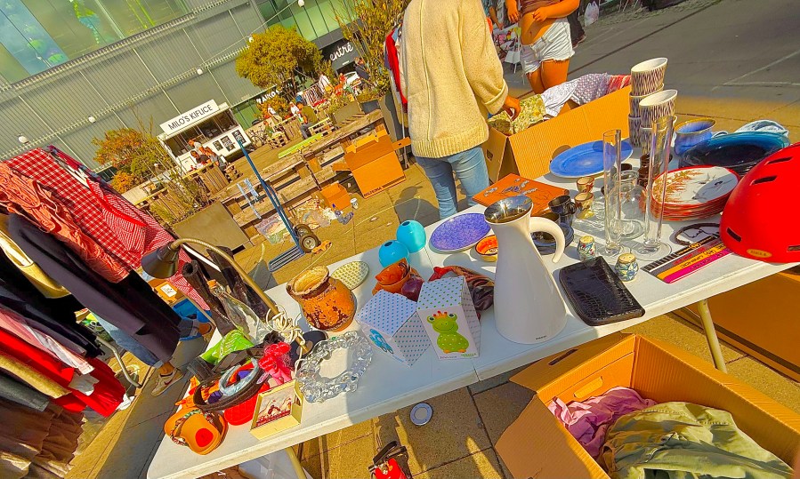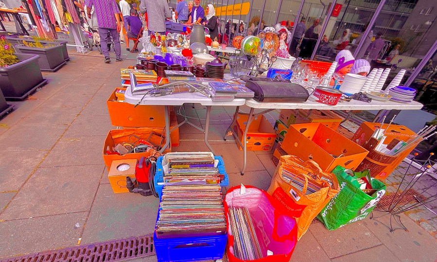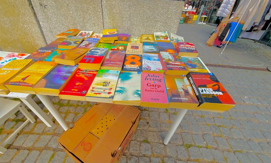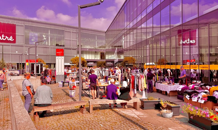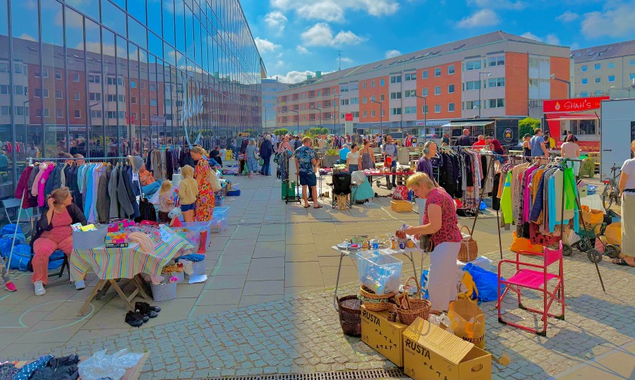 Ja, den heter det nu, platsen som sträcker sig längs med Pilgatan ner till Fredsgatan och Entré. Är väl ett bra namn. Matvagnarna som är stationerade där har några gånger under sommarsäsongen fått draghjälp av Entrés loppis. Så mycket loppmarknad inne på köpcentrat är det dock inte frågan om. Där såg jag bara två loppisstånd idag. Desto fler utanför på det nya Fredstorget då. Och mycket folk, ja, liv och rörelse. Det är alltid välkommet. Billiga priser och god prutmån överlag. Jag köpte själv ett paraplyställ för en femtiolapp, inför regnig höst och vinter.