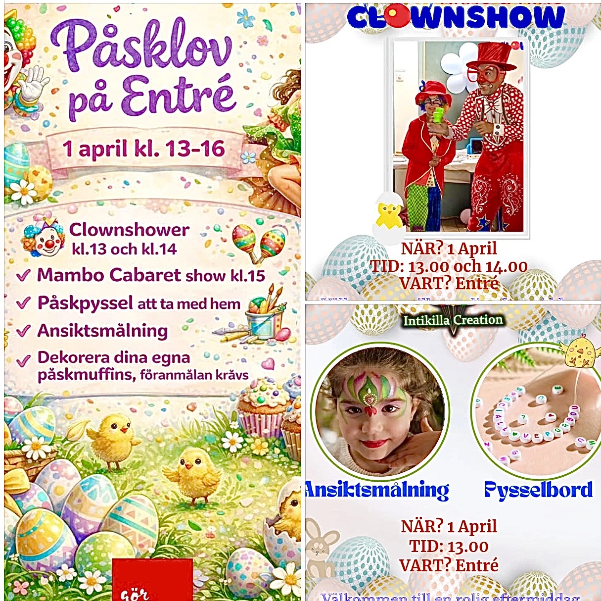 Påsken, vårsolen och det hårda platta ljuset över Värnhem. Vetskapen om sommaren, olidlig värme och svårigheter att andas. Redan nu har jag börjat längta efter hösten. Oops, det var visst dystergöken som talade. Men vår tragiska gamla favoritgalleria har i alla fall levt upp i veckan. Stället kryllar av påsklovslediga barn och föräldrar. Idag bjöds det på clowner, diverse barnaktiviteter, och sockervaddsmaskinen går för högtryck. Så något utöver det vanliga på den dagliga turen till Hemköp. Blev glader över att se allt liv.