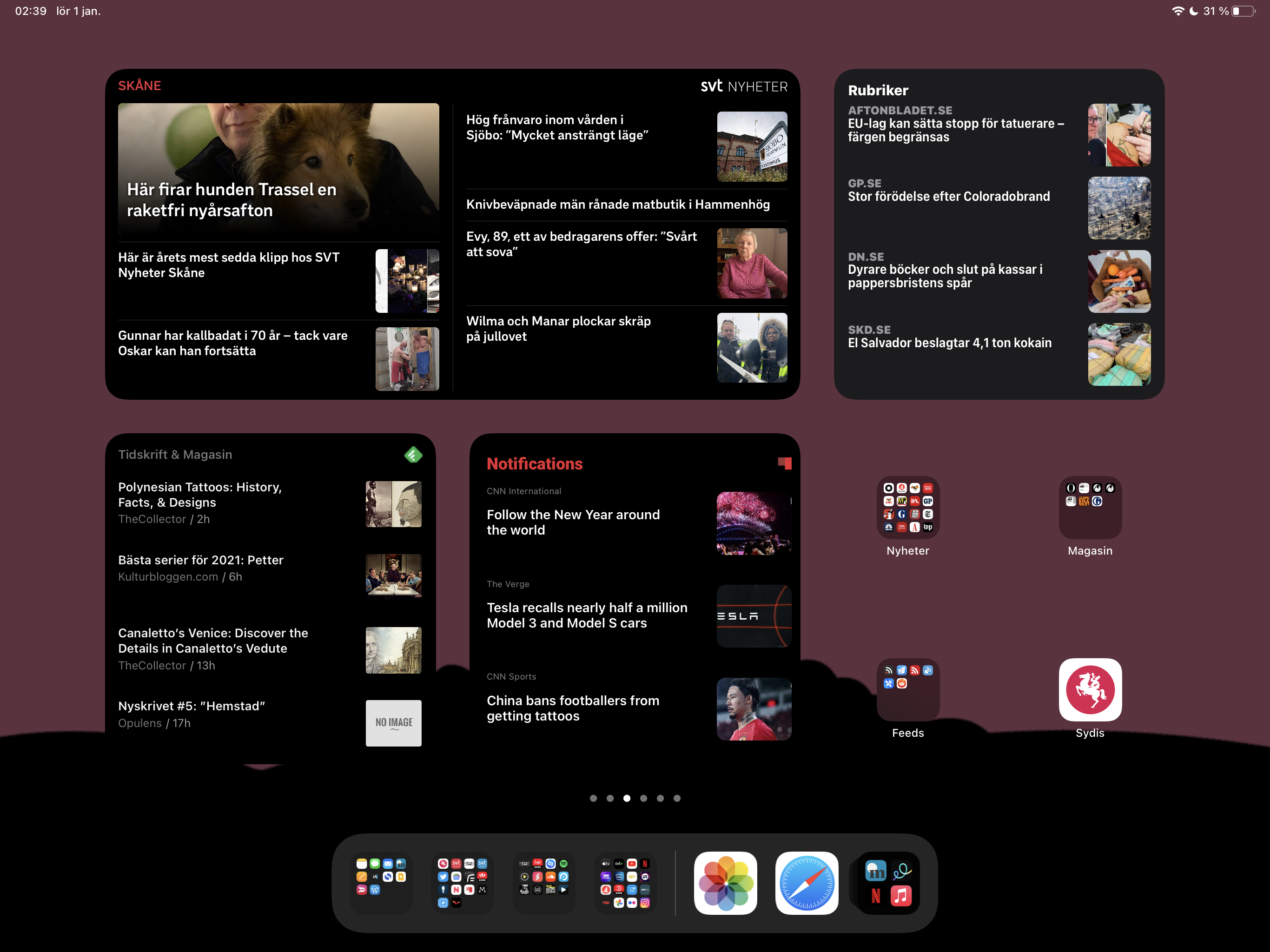 Så nu är Apple Watch och Apple Tv redo för det nya året. Och min iPhone och mina bägge iPad Pro’s (ja, jag behöver två) är mer eller mindre identiska i upplägg och struktur. För ett digitalt lugn och ett Sverige i tiden. Ordning überalles.